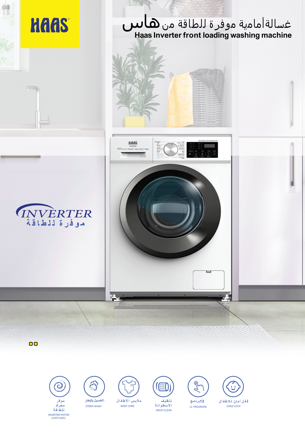 غساله اوتوماتيك فتحة امامية هاس 6 كيلو 12 برنامج انفرتر ابيض كود الموديل: HWF60SW